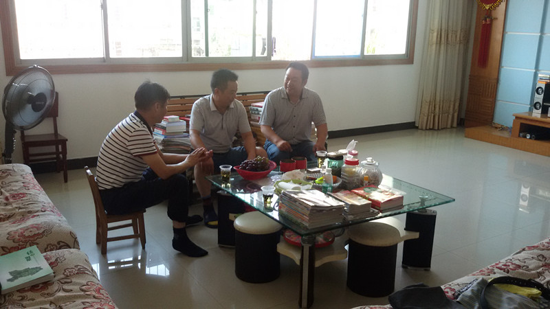 7月30日,县林业局党组副书记、副局长罗先海同志急切见到易绍先和高友君二位入党介绍人的心情没有因为是双休日和七月的酷暑所阻挡,一大早,罗先海同志就带着局人事科科长戴爱国、甘家厂林业站站长熊平新从县城出发,驱车赶到甘家厂乡政府院内一幢二层住宿楼去拜见易绍先同志。罗先海走进易绍先家中,俩人亲切握手,互致问候,似久别的朋友,感情的闸门一下子就被打开。易绍先从乡领导岗位退下来后,现担任着乡老干支部书记,平时除抓好乡老干、老区工作外,还经常锻炼身体,看看书读读报,子女幸福,家庭和睦。罗先海向易绍先赠送了《绿满荆楚》等书籍,对自已工作近况和当前我县实施的"绿满公安"行动和淤泥湖湿地公园建设也做了简要介绍。俩人还情不自禁地共同回忆起加入党组织的光荣时刻。那是1992年,易绍先是乡纪委书记,向党组织积极推荐、介绍了时任乡财办主任,政治思想好,工作出色的罗先海入党。罗先海等和易绍先话别后,又匆匆赶回县城,到梅园小区一住宿楼去拜见高友君同志。在高友君家中,俩人进行了亲切交谈。高友君现年65岁,性格开朗,精神饱满,10前从县总工会常务副主席退下来以后,喜爱文学,勤于笔耕,家中收藏着许多政治、文学书籍,关心国家大事,关注公安经济社会发展,经常写些诗词、散文等。罗先海和高友君俩人回忆起在甘家厂乡一起工作、学习的场景,共同参加的陆兴新村建设、特色产业发展、乡村财务管理等,如数家珍,历历在目。