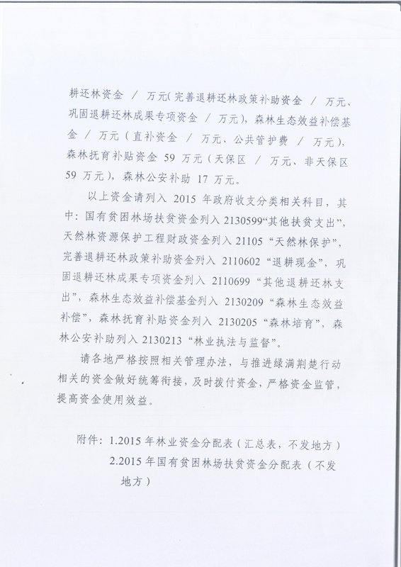 关于拨付2015年林业资金的通知