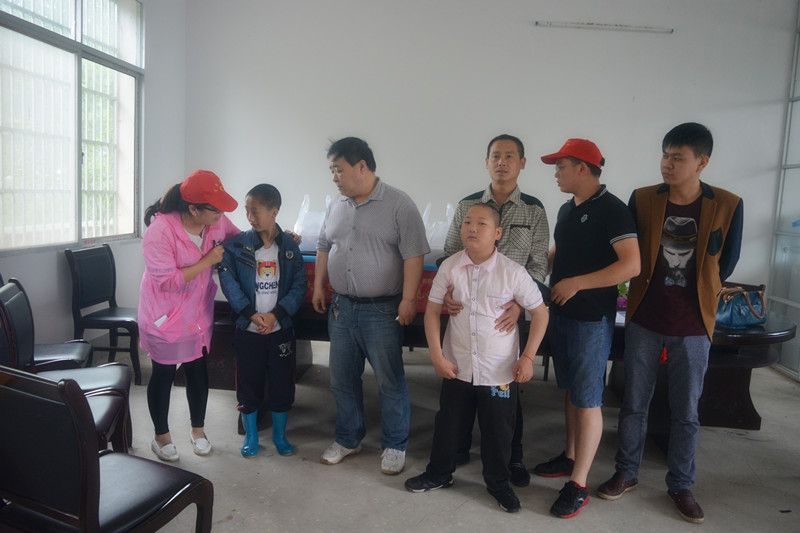 自愿者在该村了解6-18周岁贫困留守儿童生活、学习等情况后,给两名扶贫对接的残疾儿童桑子凡、段昱分别送上书包、学习用品及爱心扶贫助学金200元。