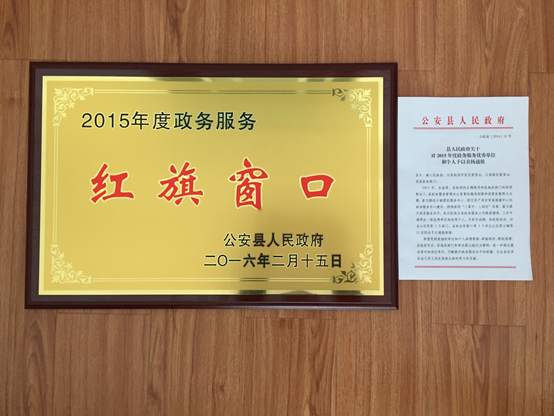 28365365体育行政审批服务窗口在县政府政务服务工作年度总评中,被评为2015年度政务服务红旗窗口,受到县政府通报表扬并颁发奖牌。